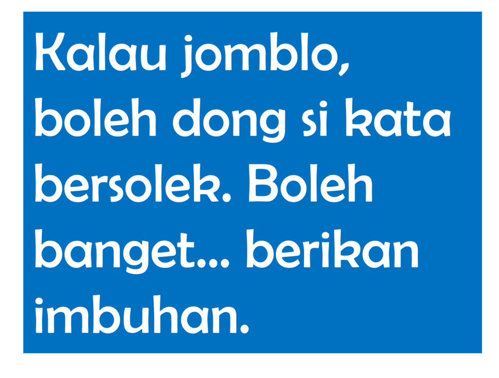 Sebenarnya masih banyak alat pesolek lain yang akan membikin si jomblo kita ini makin keren. Tapi, menurut hemat saya, dengan penjelasan singkat ini saya yakin kita akan makin paham. Bahwa pemakaian imbuhan atawa alat bersolek kata itu bisa juga mengubah satu kata menjadi jenis kata lain. Paham ya. Salam.