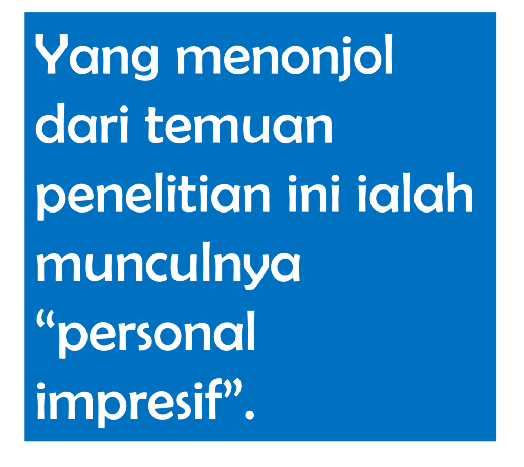 Yang menonjol dari temuan ini ialah munculnya pola komunikasi yang dapat disebut sebagai “personal impresif”. Itu merujuk pada kemampuan pemimpin menghadirkan kesan mengagumkan melalui tindakan, ucapan, dan kehadiran yang terekam lalu disebarkan kepada publik.